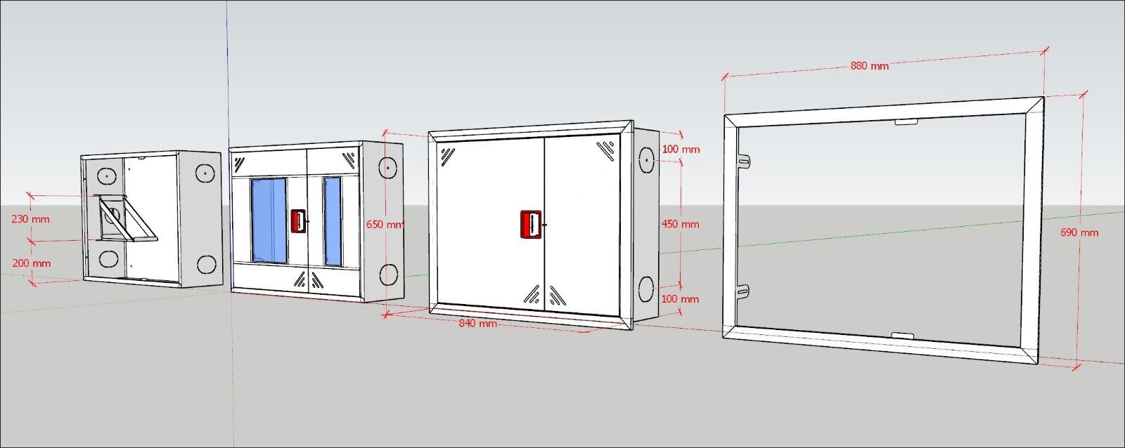 Встроенный пожарный шкаф для размещения пожарного крана и оборудования. Устанавливается в нишу стены, обеспечивает быстрый доступ и аккуратный внешний вид.